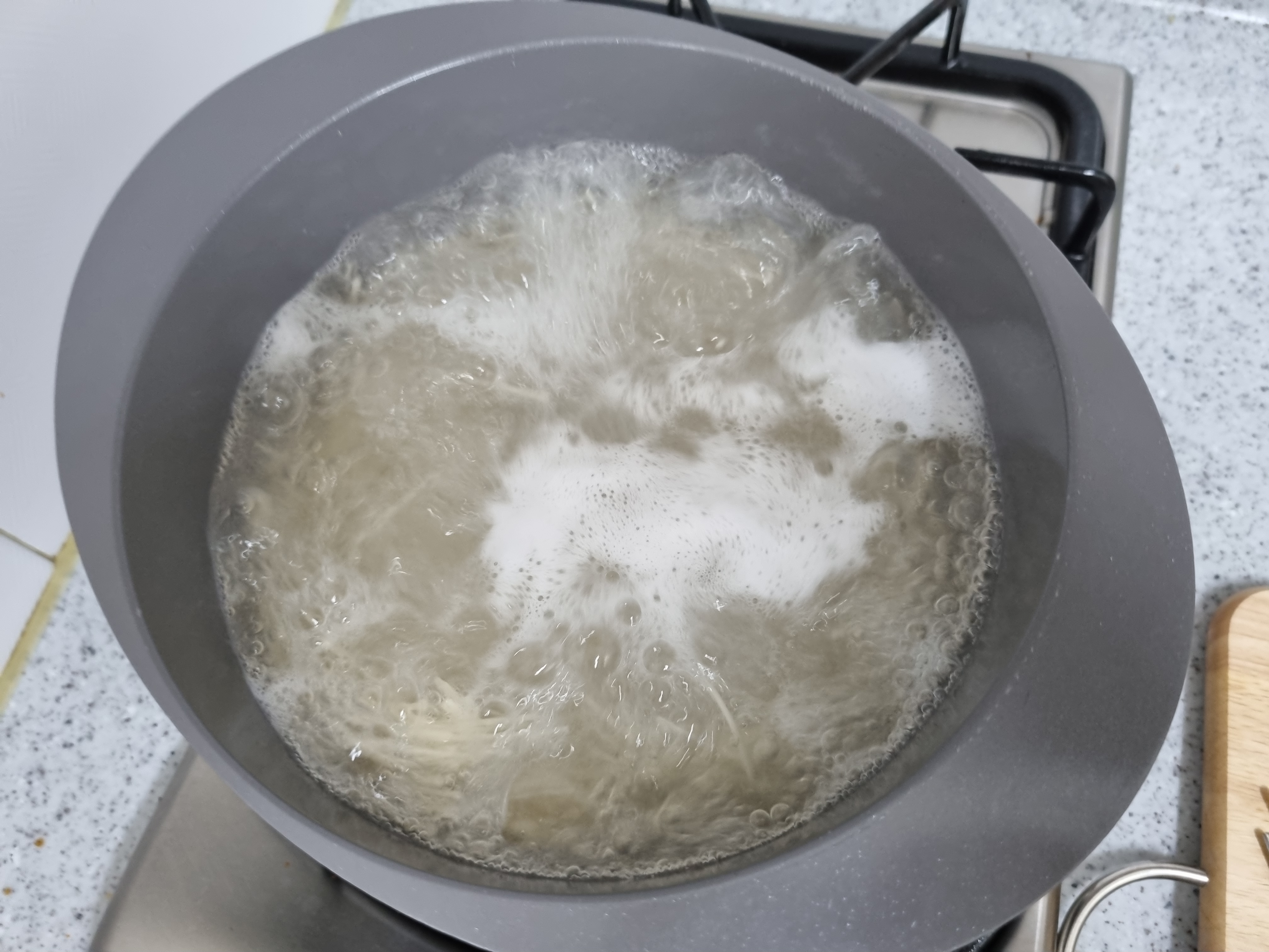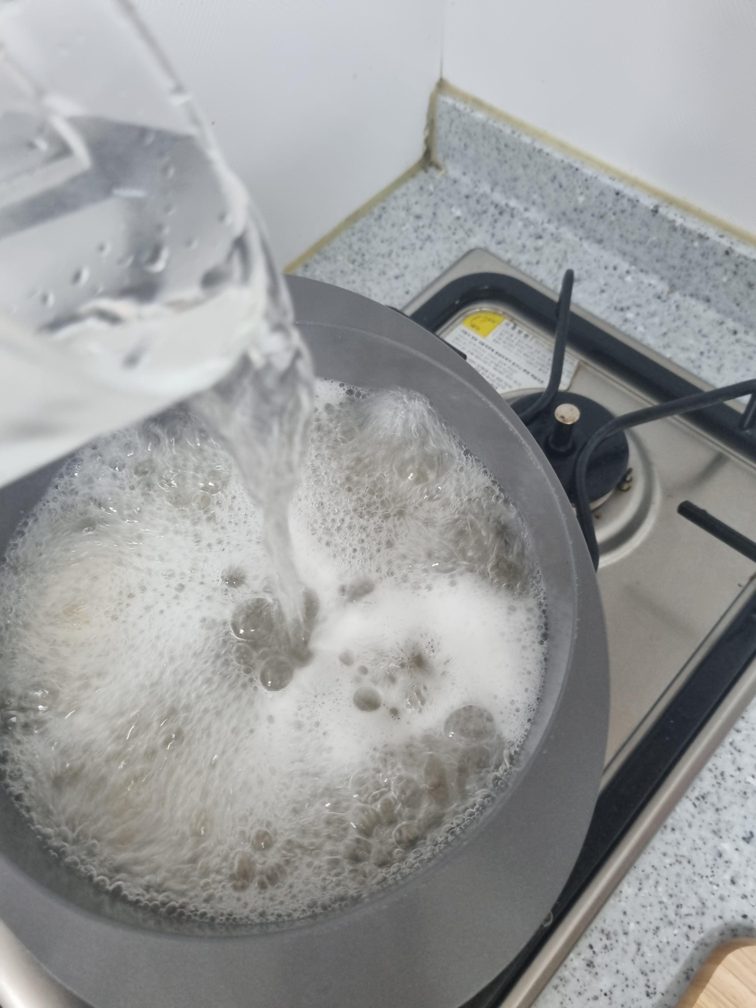 소면은 끓이다 보면 넘칠라고 할 때가 있는데 그때 찬 물을 조금 넣어주면