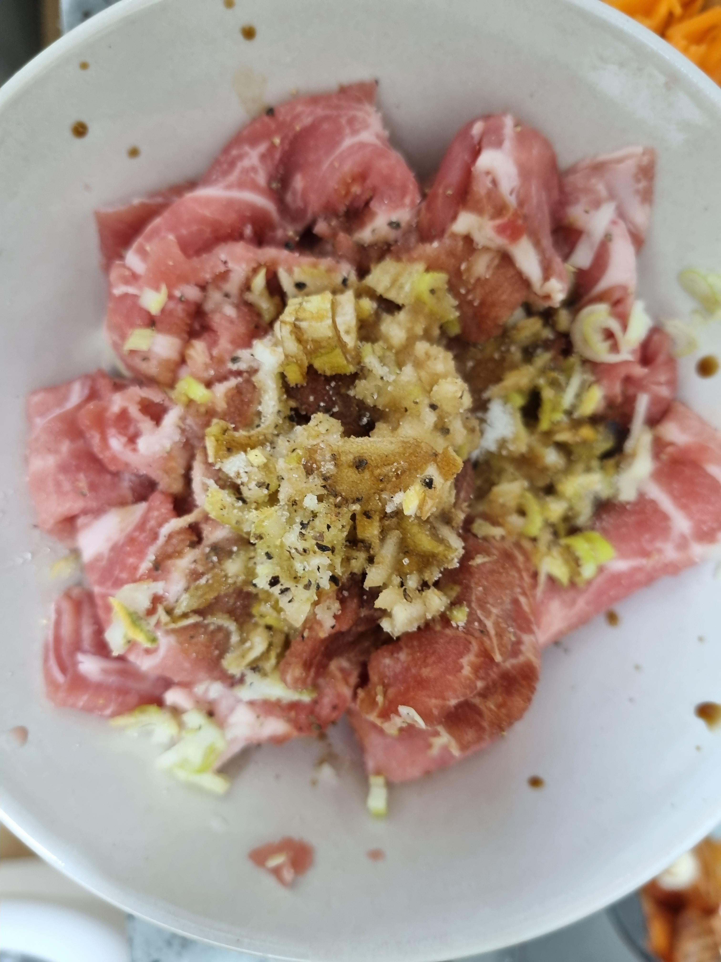 재료는 양파랑 당근, 오이, 냉동에 있던 대패 목살을 사용했다.